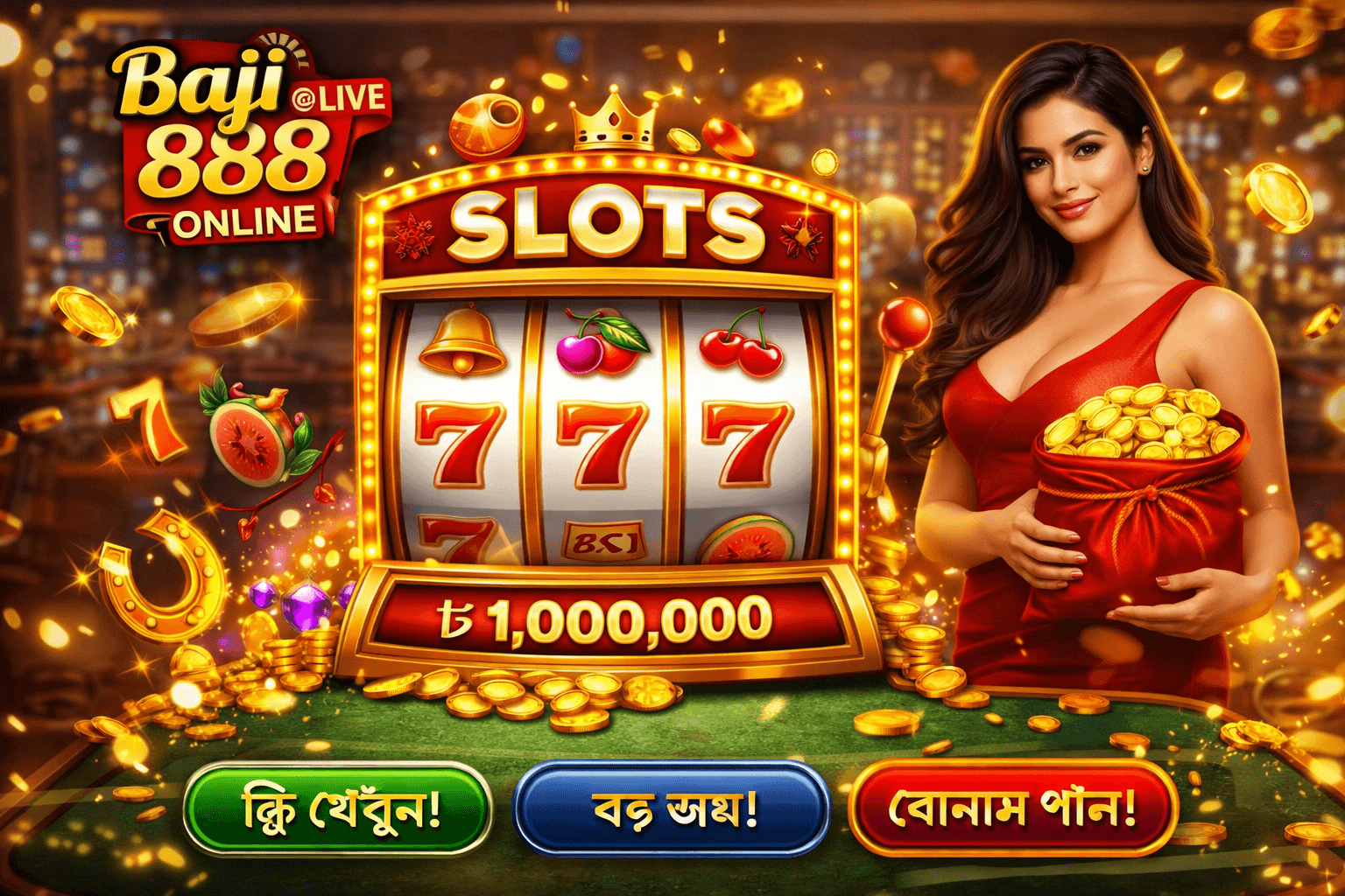 আমাদের স্লট বিভাগে রয়েছে ৩০০ এরও বেশি আধুনিক স্লট মেশিন গেম। ক্লাসিক থ্রি-রিল স্লট থেকে শুরু করে আধুনিক ভিডিও স্লট, মেগাওয়েজ স্লট এবং প্রগ্রেসিভ জ্যাকপট স্লট — সব ধরনের স্লট গেম আমাদের কাছে পাওয়া যায়।
